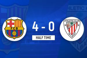 体育资讯1月8日讯 北京时间1月8日凌晨3时整,西班牙超级杯半决赛在吉达阿卜杜拉国王体育场展开角逐,巴塞罗那对阵毕尔巴鄂竞技。上半场费兰首开记录,费尔明2传1射,拉菲尼亚和巴德吉均献传射,西蒙送礼, 巴塞罗那暂时4-0领先毕尔巴鄂竞技。