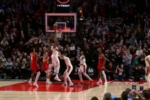 希罗和公牛吉祥物比赛半场背投 后者一击命中让希罗“临阵退缩”