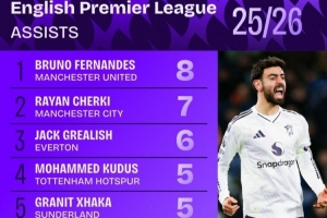 体育资讯1月10日讯 数据机构squawka统计了本赛季英超助攻情况,B费居首。