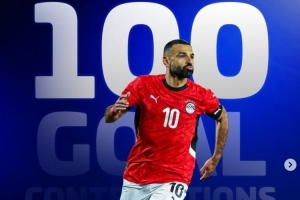 数据统计显示,萨拉赫达成埃及国家队直接参与100球里程碑,共计出战111场贡献65球35助攻。