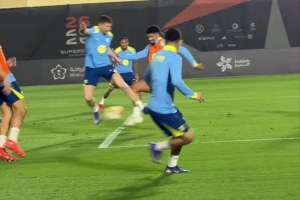 巴萨正在备战这场重要比赛,莱万在训练中脚后跟破门,展现了不错的竞技状态。