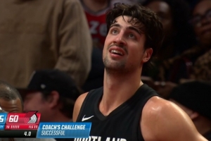 GIF-阿夫迪亚突破被哈特切球犯规,尼克斯挑战成功,没有罚球