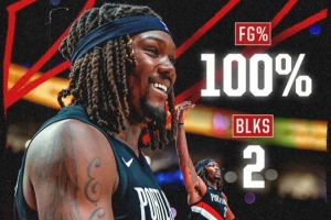 杰伦·约翰逊37场赛季达成300板300助 追平18詹 并列历史最快前锋