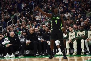 赛后,塔图姆接受了记者采访。谈到霍勒迪被低估,他说道:“这是这个行业的常态。人们很快忘记了他曾是两届全明星、两届奥运金牌得主、两届总冠军,他的职业生涯堪称名人堂级别。我很幸运能与他同在一个冠军球队,并且和他一起赢得了两枚奥运金牌。我非常感激朱-霍勒迪对我的职业生涯的帮助。”