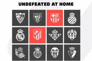 体育资讯1月15日讯 据西甲官方统计,巴萨和马竞是本赛季仅有的两支西甲主场不败球队。