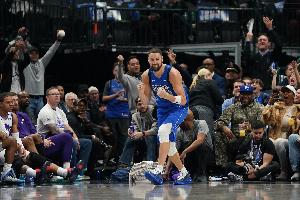 尽管投有板!追梦弧顶三分不中 库里前场板补进两分