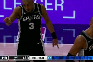 小摩擦!斯玛特突破上篮得手&起身时压到里斯 随后回防拼抢犯规
