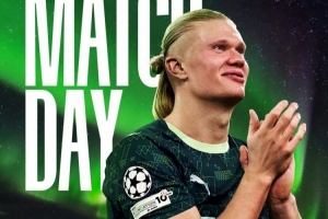 曼城官方社媒晒出为此役制作的海报,哈兰德出镜,背景为北极光下的阿斯普米拉体育场。