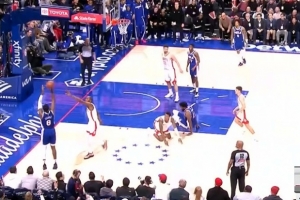这球是普通犯规!努尔基奇扑防不及 文班亚马拔起三分还有加罚