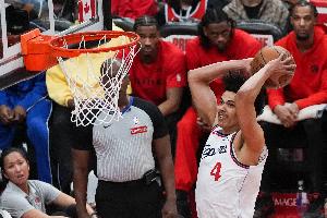 起飞了!凯莱布·乐福反击直接抛传 夏普蓄力起飞双手空接炸扣