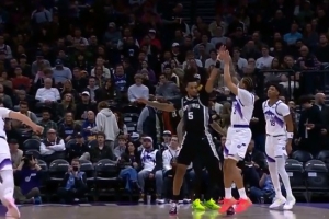 起飞了!凯莱布·乐福反击直接抛传 夏普蓄力起飞双手空接炸扣