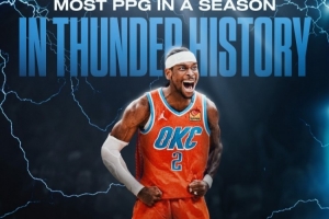 威少在2016-17赛季效力雷霆期间曾场均砍下31.6分(并拿下MVP)