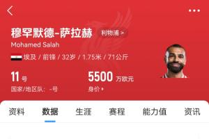 体育资讯03月18日讯 德转更新英超球员身价,32岁的萨拉赫身价没有变动,仍为5500万欧元,排名英超并列第27位。