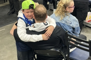 今日森林狼老将英格尔斯患有自闭症的孩子雅各布第一次来到了球馆看球,森林狼主帅芬奇特意安排英格尔斯首发出战。赛后英格尔斯也亲切地拥抱了自己的孩子。