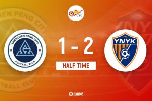 上半场补时7分钟,深圳新鹏城1-2云南玉昆。