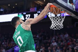 本场比赛塔图姆复出打了36分钟,22投12中,三分9中2,罚球7中7砍下29分10篮板8助攻,正负值+9。