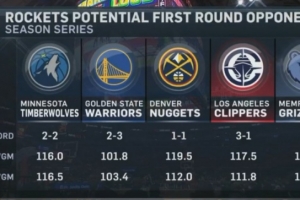 火箭与五大首轮潜在对手交手战绩以及场均得分和失分
