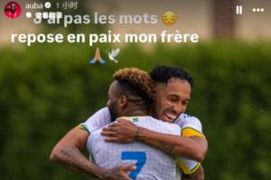 奥巴梅杨配以深情怀念:"我无话可说,安息吧我的兄弟"。
