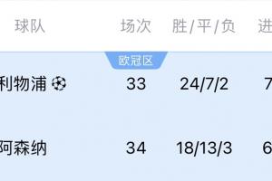 体育资讯04月24日讯 随着阿森纳2-2战平水晶宫,本周日利物浦主场迎战热刺,只需打平就可提前锁定联赛冠军。