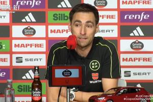 国王杯决赛赛前,西班牙足协安排了本次比赛的裁判组出席发布会,其中主裁德布尔戈斯在被问及皇马TV的争议判罚视频时流泪。