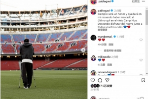 加维社媒:很荣幸攻入老诺坎普最后一球,期待与球迷享受新球场
