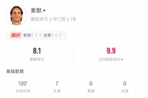 体育资讯5月7日讯 国米4-3战胜巴萨,总比分7-6晋级欧冠决赛!本场比赛,国米门将索默贡献7次扑救!护送球队挺进决赛!