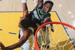 赛后,森林狼官方晒出了本场赢球海报,爱德华兹隔扣卢尼荣登封面。