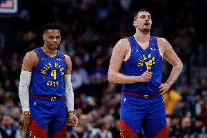 据统计,NBA历史上仅有两名球员在季后赛砍下过至少40分15板5助攻5三分:约基奇、威少(45分15板7助攻5三分)。