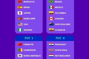 2025年国际足联U17女足世界杯将于2025年10月至11月在摩洛哥举行,届时将有24队参赛,目前24队分档如下:
