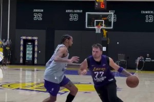 夸梅:詹姆斯防守时回半场都费劲 但进攻时跑起来还像火车头一样