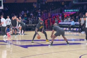 下一篇: 扎实的基本功!詹姆斯赛前运球热身训练