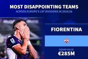 德转盘点本赛季最令人失望球队:佛罗伦萨、森林、纽卡、毕巴在列