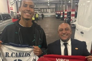 传奇同框!范戴克与卡洛斯互换球衣,两代顶级后卫惺惺相惜